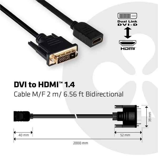 Club 3D Kábel - CAC-1211 (DVI-D to HDMI 1.4, 2m, M/F, kétirányú, UHD 4K30Hz, Arany érintkezők)