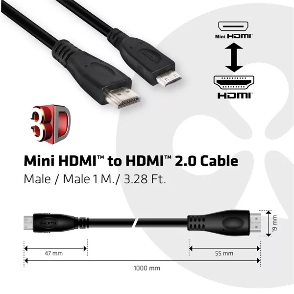 Club 3D Kábel - CAC-1350 (Mini HDMI 2.0, M/M, 4K 60Hz, HDR, 1m, Bi-Directional)