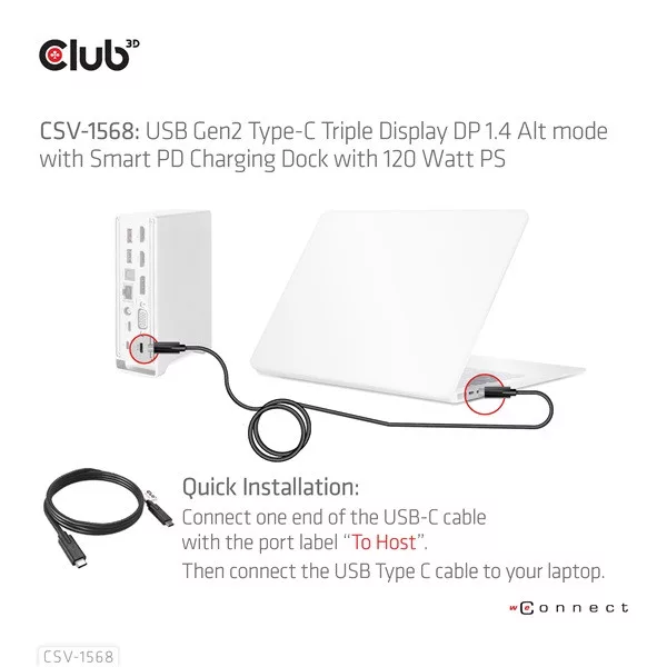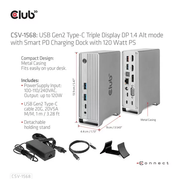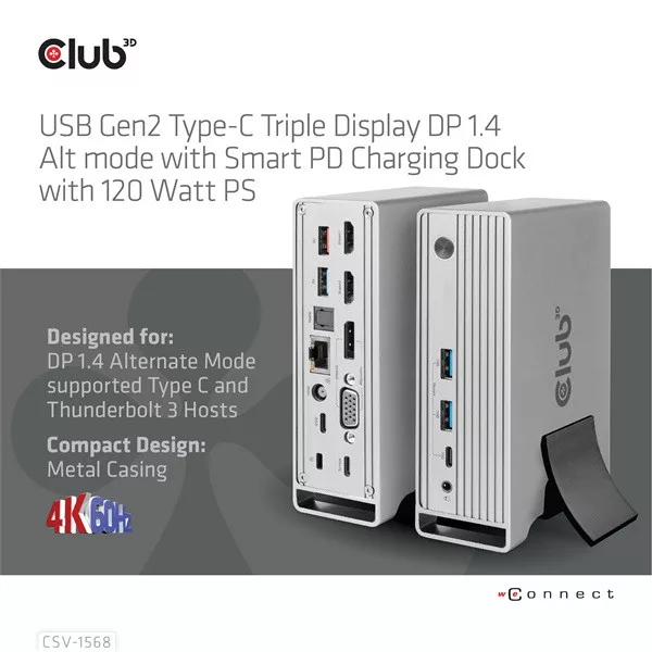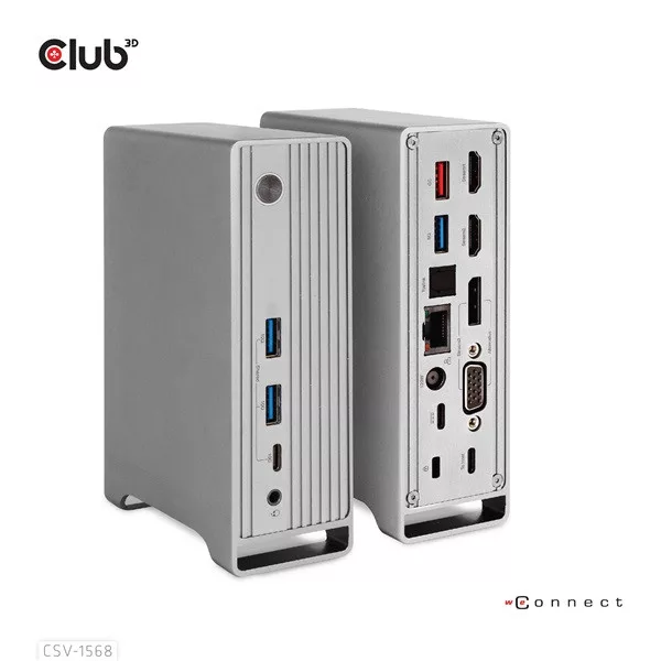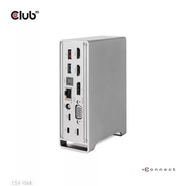 Club 3D Notebook Dokkoló - CSV-1568 (120W, Gen 2 USB-C to 4x USB-A, USB-C Gen 2, 2xHDMI, DP, VGA, RJ45, DC)