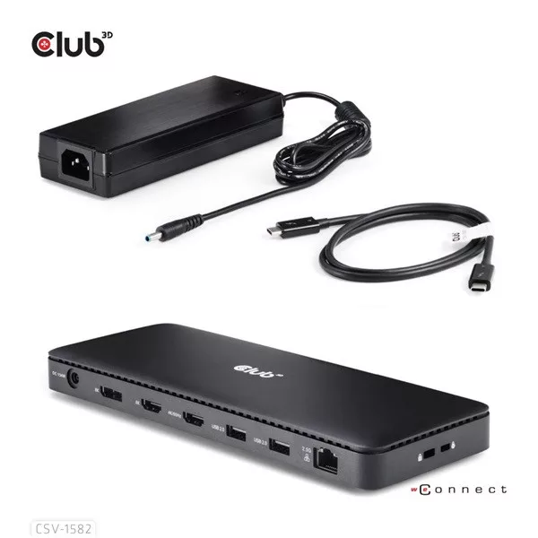 Club 3D Notebook Dokkoló - CSV-1582 (140W, Thunderbolt 4, DP, 2xHDMI, USB-C, 4xUSB-A, SD, TF, RJ45, 3,5 Jack, DC)