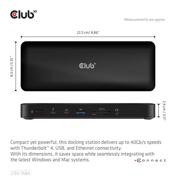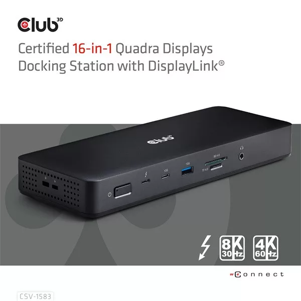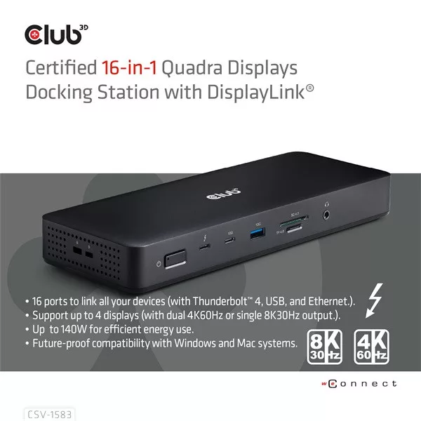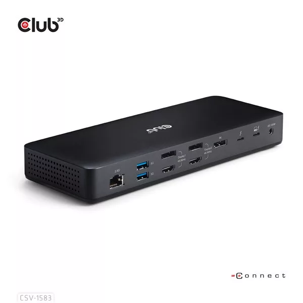 Club 3D Notebook Dokkoló - CSV-1583 (140W, 2xThunderbolt 4, 3xDP, 2xHDMI, USB-C, 3xUSB-A, SD, TF, RJ45, 3,5 Jack, DC)