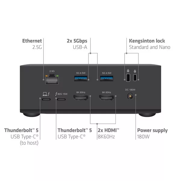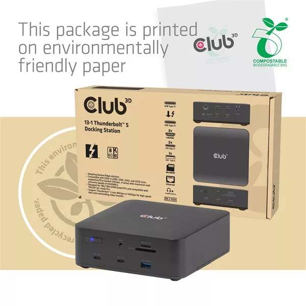Club 3D Notebook Dokkoló - CSV-2562 (180W,Thunderbolt 5 to 2xHDMI, 2xUSB-C, 10Gbps, 2x USB-A 5Gbps, USB-A 10Gbps, M2)