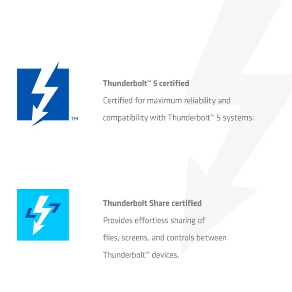 • MINŐSÍTETT THUNDERBOLT™ 5 HUB – Az első TB5 eszközünk, amely teljes mértékben tanúsított a garantált kompatibilitás és a csúcsteljesítmény érdekében.