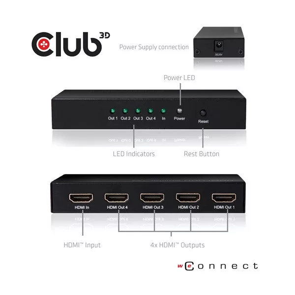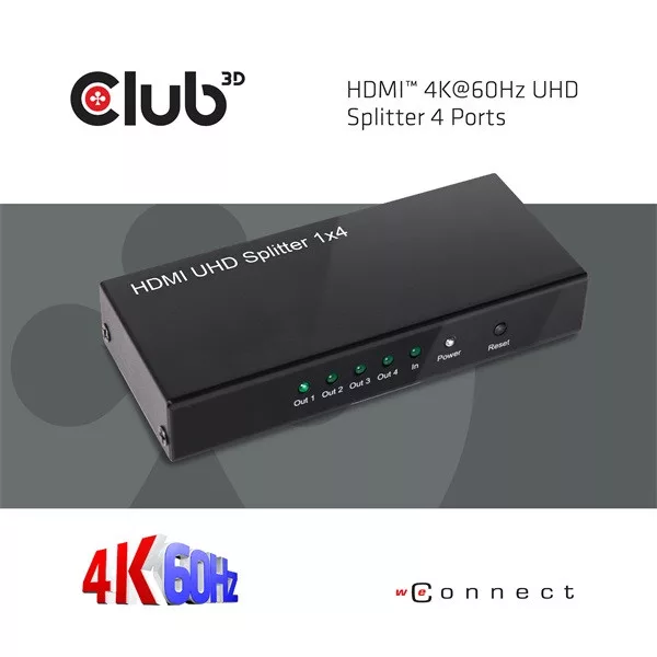 Club 3D Splitter - CSV-1380 (HDMI 2.0, 4K@60Hz UHD, 4 port, 3D támogatás, HDCP 1.4/2.2)