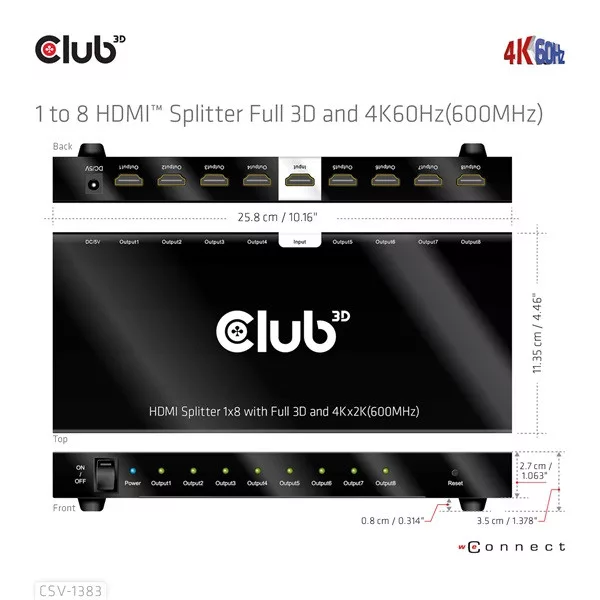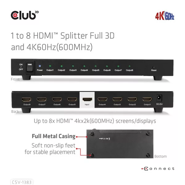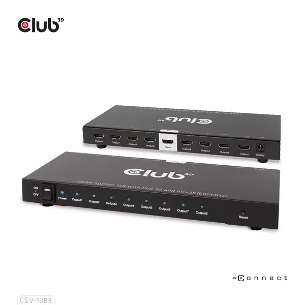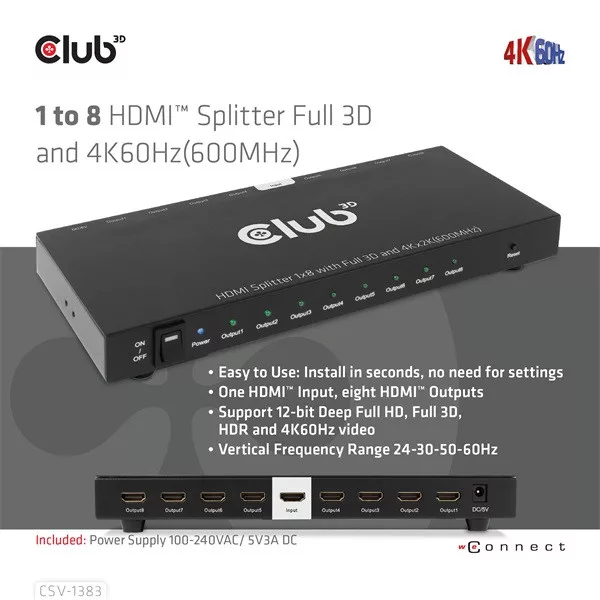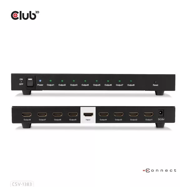 Club 3D Splitter - CSV-1383 (1 to 8 HDMI, 4K60Hz, HDR, Full 3D, 6Gbps, 12-bit Deep Color)
