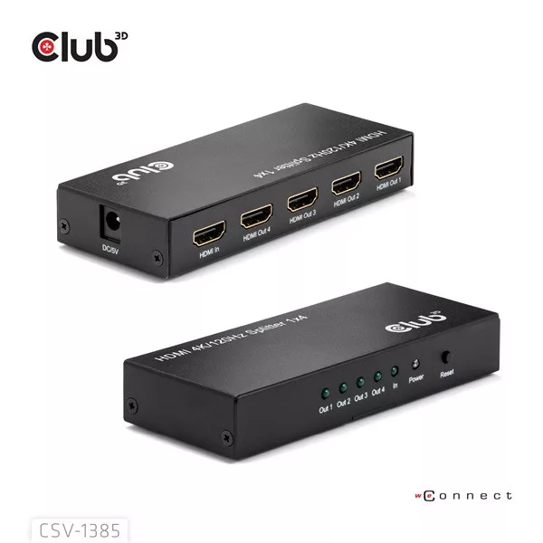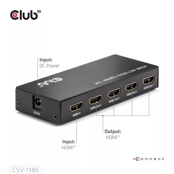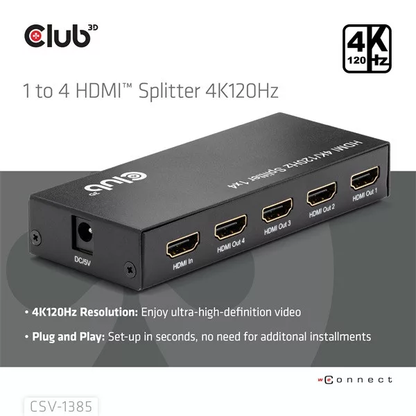 Club 3D Splitter - CSV-1385 (1 to 4 HDMI, 4K120Hz, 3D, HDCP 1.4/2.2, Audio, 6Gbps)