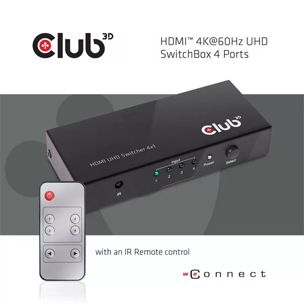 Club 3D Switch - CSV-1370 (HDMI 2.0, 4K60HZ, 4 Port, IR távvezérlővel)