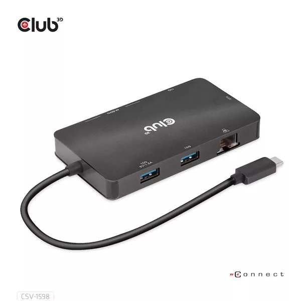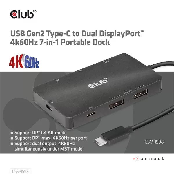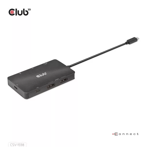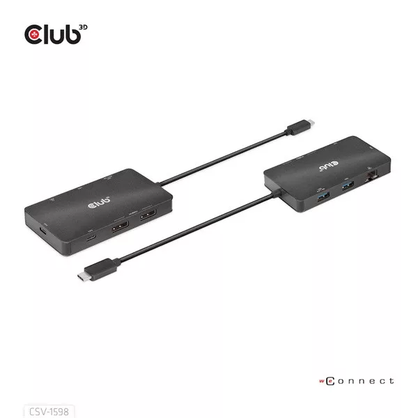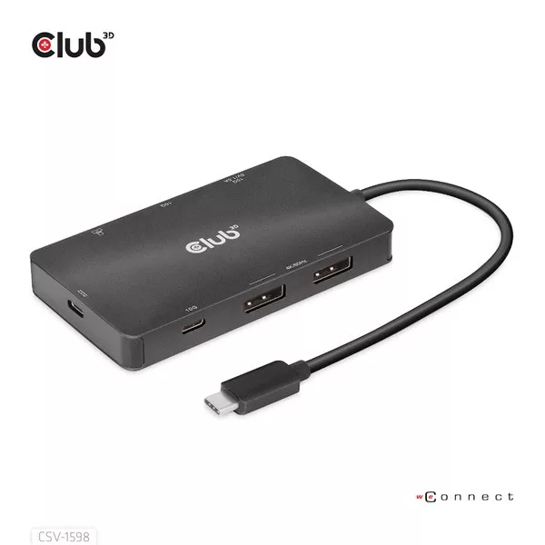 Club 3D USB Hub - CSV-1598 (USB-C Gen 2 to 2xDisplayPort, 2xUSB-A Gen 2, 2xUSB-C Gen 2, RJ45, 4k60Hz)