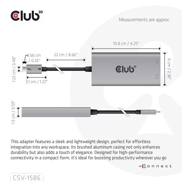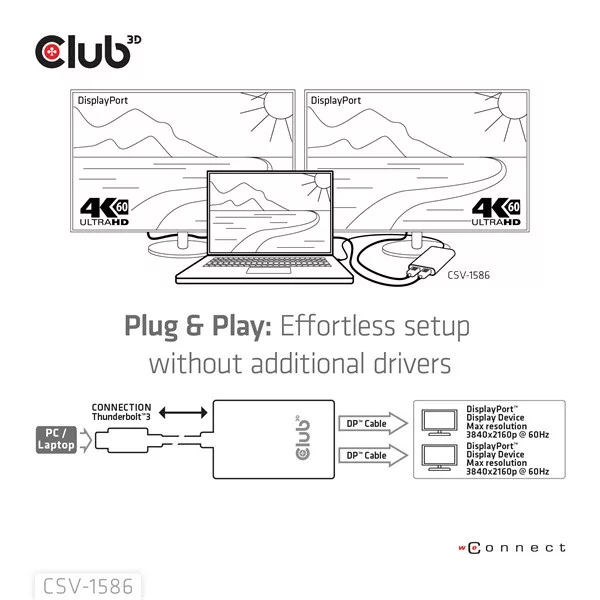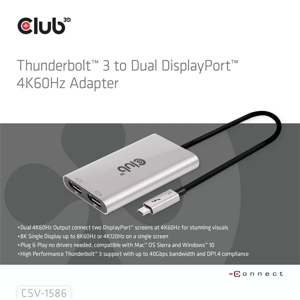 Club 3D Video Splitter - CSV-1586 (Thunderbolt 3 to Dual DisplayPort, 40Gbps, 4K60Hz)