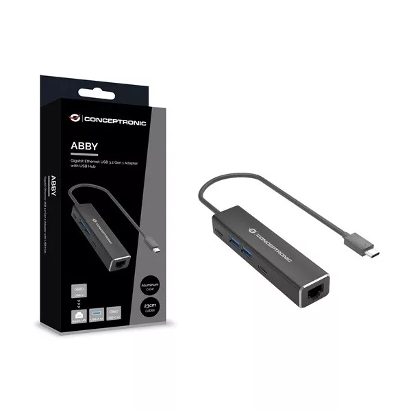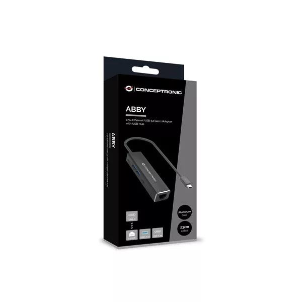 Conceptronic Kábel - ABBY14B (USB-C to RJ-45, 2xUSB-A+2xUSB-C, 2,5 Gbit, szürke)