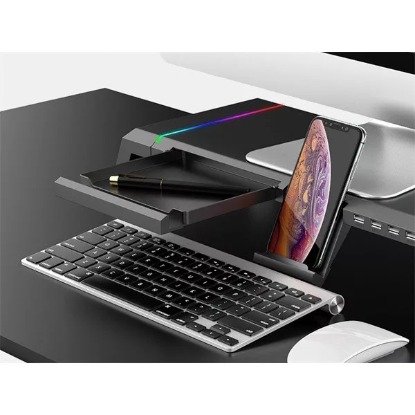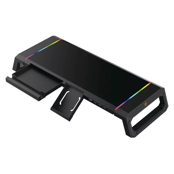 Conceptronic Monitor állvány - THORNE01B (állítható RGB, 4x USB2.0, beépített fiók, összecsukható, Max.: 10kg, fekete)