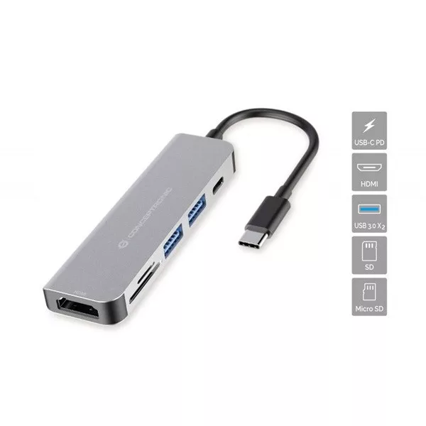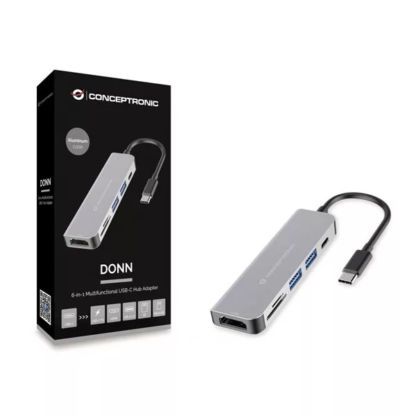 Conceptronic Notebook Dokkoló - DONN02G (USB-C to HDMI+USB-C PD:60W+USB-A+SD/TF, szürke)