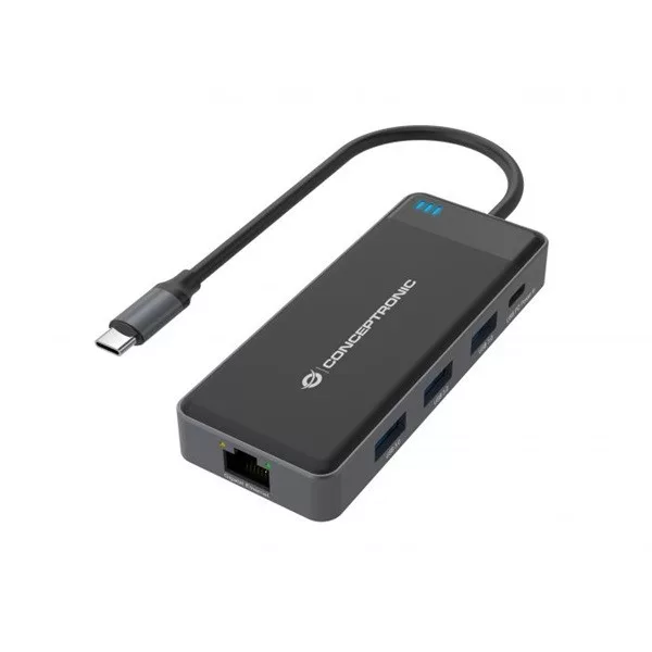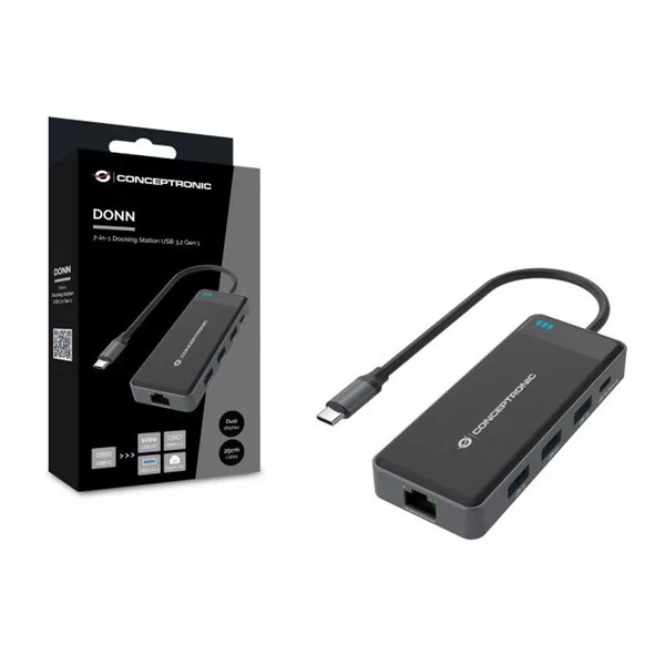 Conceptronic Notebook Dokkoló - DONN14G (USB-C to 2xHDMI+USB-C PD:100W+3xUSB-A+RJ-45, fekete)