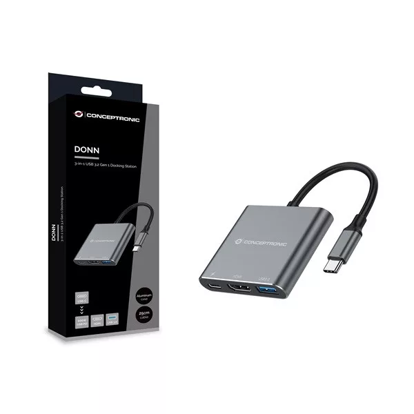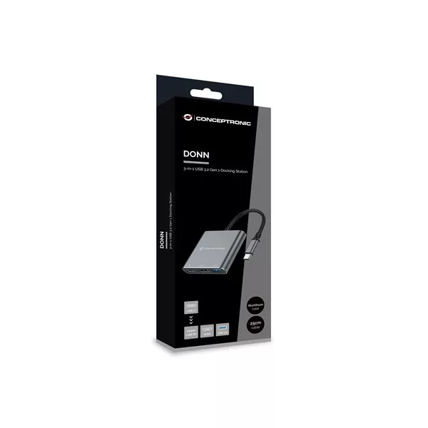 Conceptronic Notebook Dokkoló - DONN18G (USB-C to HDMI/USB-C PD/USB 3.0)