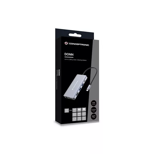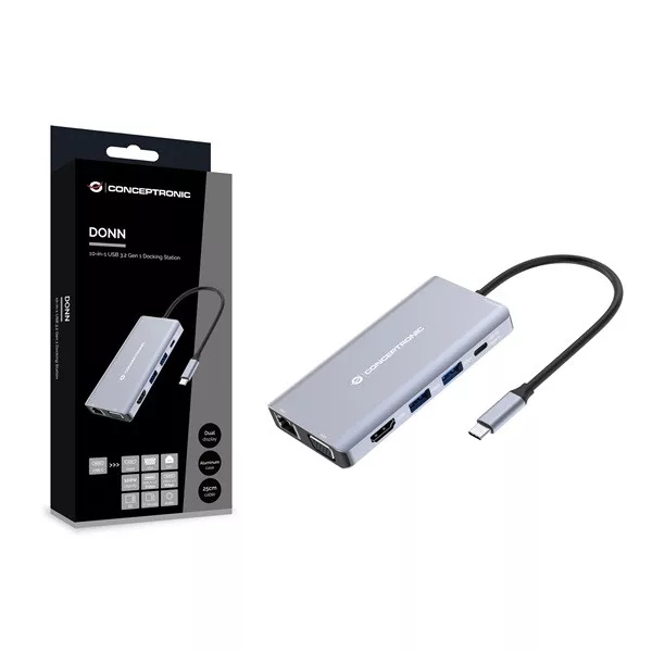 Conceptronic Notebook Dokkoló - DONN20G (USB-C to HDMI/VGA/USB-C PD/USB 3.0/SD/TF/GbE/AUX)