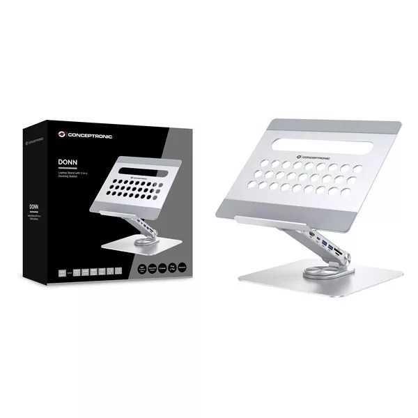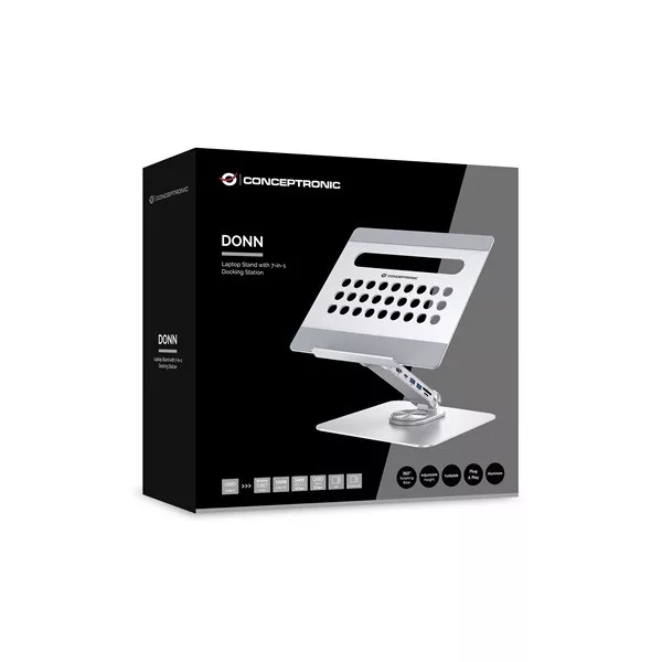 DONN27G Laptop Stand with 7-in-1 USB 3.2 Gen 1 Docking Station, 360° Rotating Base, Foldable, Adjustable Height