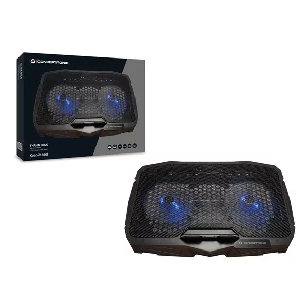 Conceptronic Notebook Hűtőpad 17"-ig - THANA07B (USB, 2x12,5cm, állítható magasság, csúszásmentes, fekete)