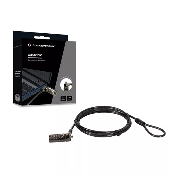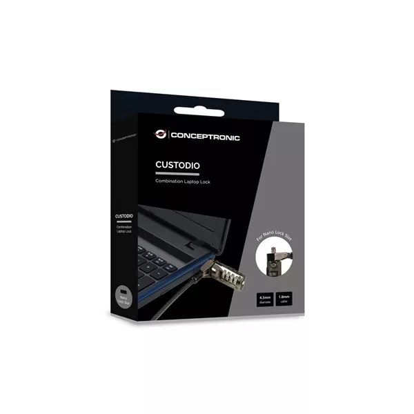 CUSTODIO01BN Combination Laptop Lock, Nano Lock Slot, 1.8m