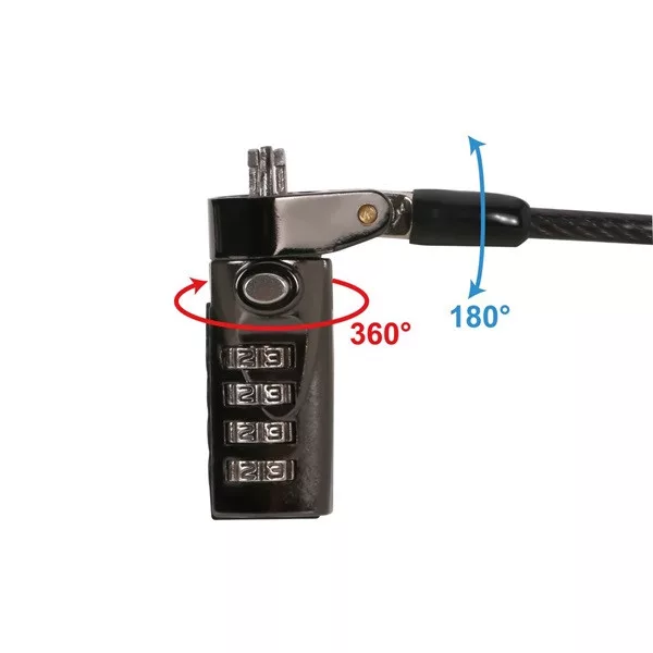 • Features a 360-degree rotatable lock head and pivoting cable for easy connection to your laptop