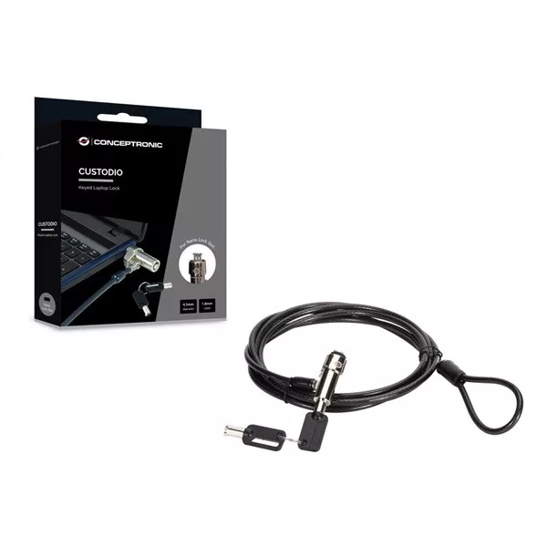 CUSTODIO02BN Keyed Laptop Lock, Nano Lock Slot, 1.8m