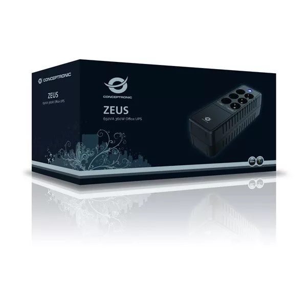 Conceptronic Szünetmentes Elosztósor  650VA - ZEUS05E (6x Schuko, Off line, RJ45 vonalvédelemm, fekete)