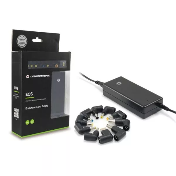 The Conceptronic notebook adapter provides a safe, reliable and convenient secondary power solution for the home or office, as well as a versatile option for when you are travelling. The device is also a perfect replacement for a broken or lost adapter. The package includes 10 different tips, which cover all major notebook brands/models. This adapter is protected against overload, short circuiting and overheating.