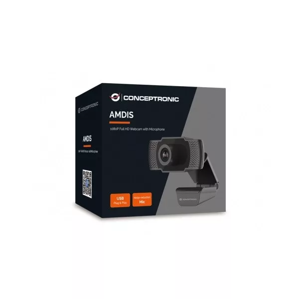 Conceptronic Webkamera - AMDIS01B (1920x1080 képpont, 2 Megapixel, 30 FPS, USB 2.0, univerzális csipesz, mikrofon)