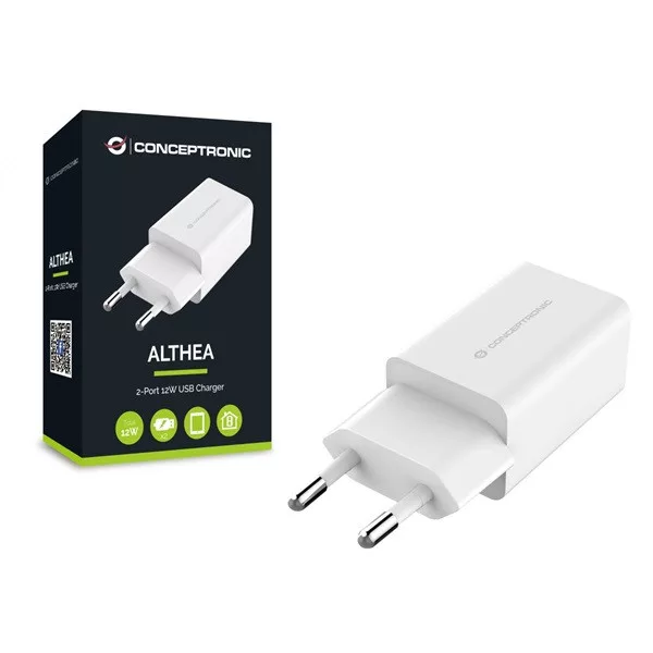 Conceptronic telefon töltő adapter - ALTHEA06W (2xUSB-A, 12W, fehér)