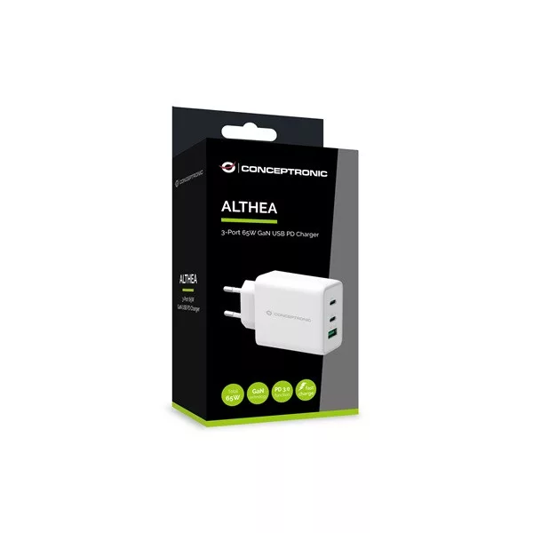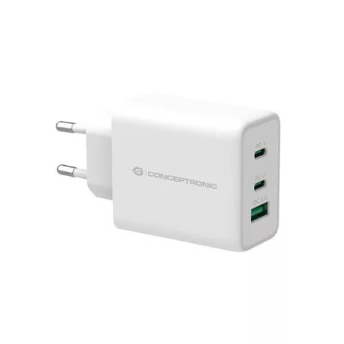 Conceptronic telefon töltő adapter - ALTHEA12W (2xUSB-C+USB-A, 65W, fehér)