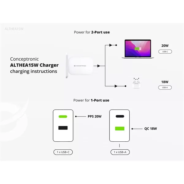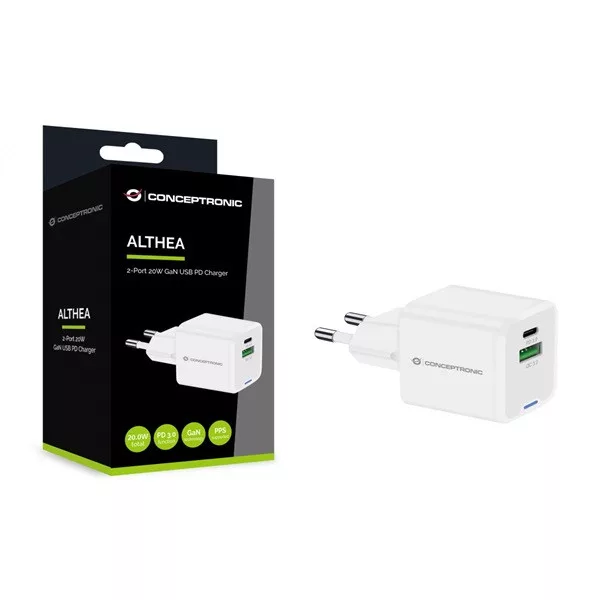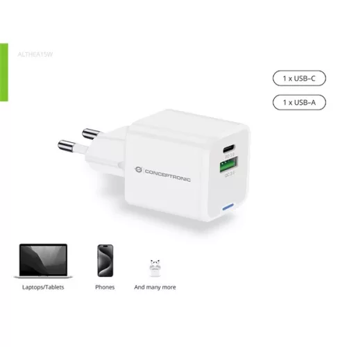 Conceptronic telefon töltő adapter - ALTHEA15W (USB-C+USB-A, 20W, fehér)