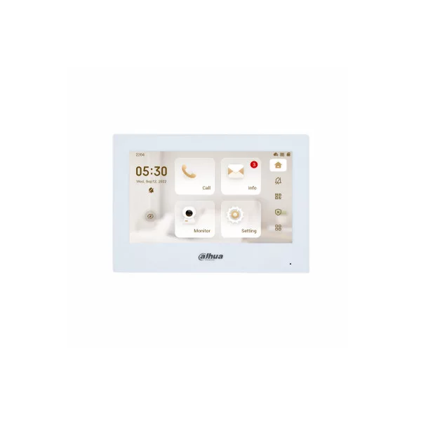Dahua IP video kaputelefon - VTH2621GW-P (beltéri egység, 7" touch screen, 1024x600, PoE, SD, I/O, H.265, fehér)
