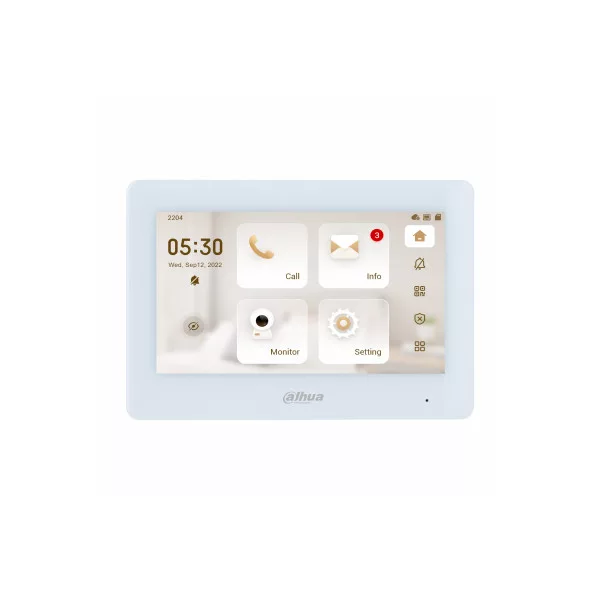 Dahua IP video kaputelefon - VTH5422HW-W (beltéri egység, 2 vezetékes; 7" touch, 3 ajtó, SD, I/O, PoE, wifi, fehér)
