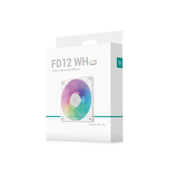 DeepCool Cooler 12cm - FD12 ARGB WH (27,6dB; max. 109,07 m3/h; 3pin csatlakozó; hydro bearing, ház hűtésre, PWM, fehér)