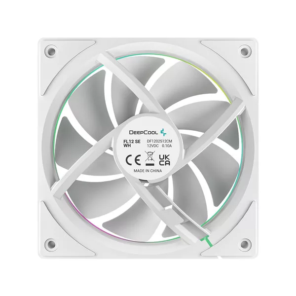 DeepCool Cooler 12cm - FL12 SE WH (3in1) (28.67dB; max.86,20 m3/h; 3x12cm, 3pin; hydro bearing, ház hűtésre, RGB, PWM)