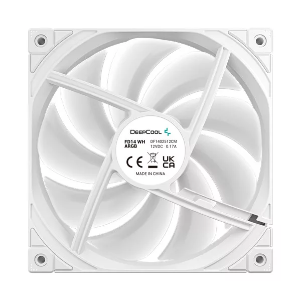 DeepCool Cooler 14cm - FD14 ARGB WH (3in1) (25,6dB; max. 144,09 m3/h; 3pin csatlakozó; hydro bearing, ház hűtésre, PWM)