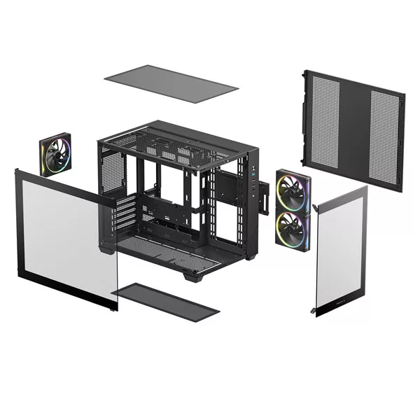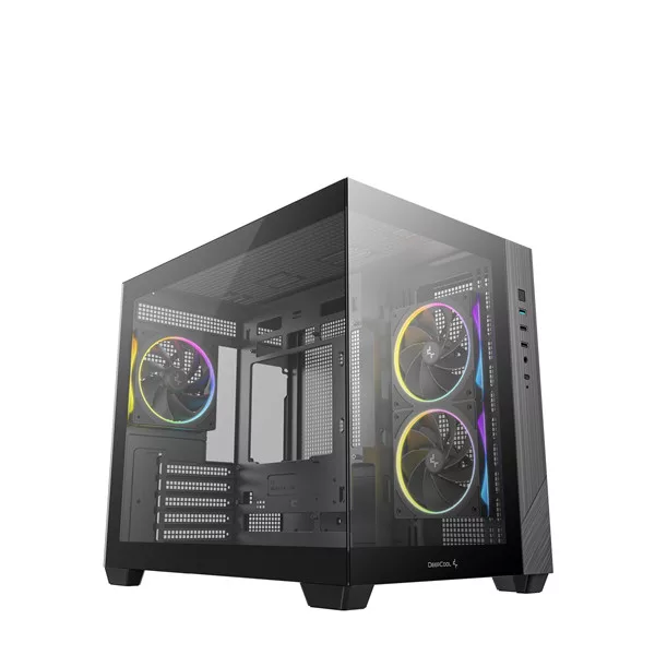 DeepCool Számítógépház - CG330 3F (fekete, ablakos, 3x12cm A-RGB, BTF, mATX, 2xUSB3.0, 1xUSB2.0)