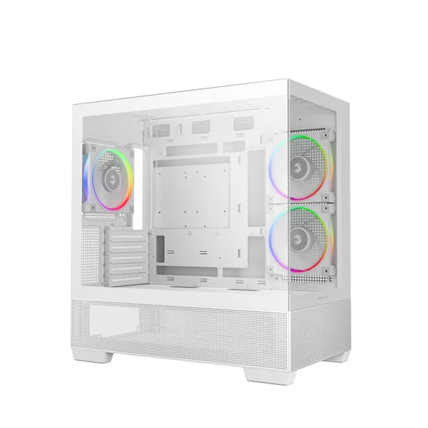 DeepCool Számítógépház - CG380 3F WH (fehér, ablakos, 3x12cm A-RGB, BTF, mATX, 2xUSB3.0, 1xUSB2.0)