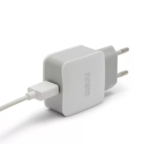 Delight Telefon töltő  - 1db USB, 5V/2.1A, Fehér