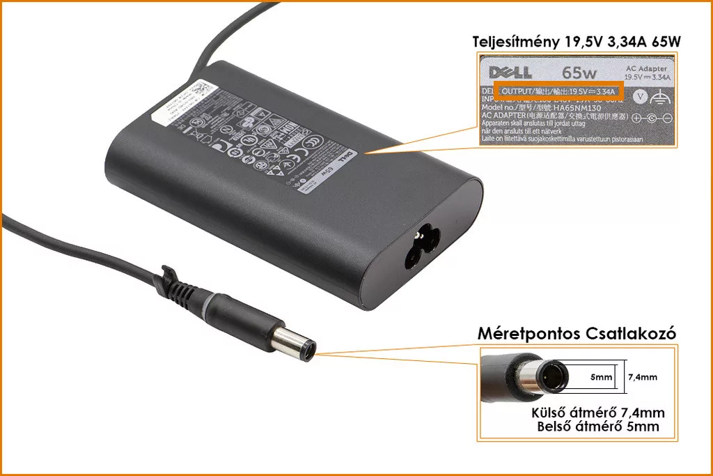 Eredeti, Gyári 65 Wattos laptop töltő Dell laptophoz.
