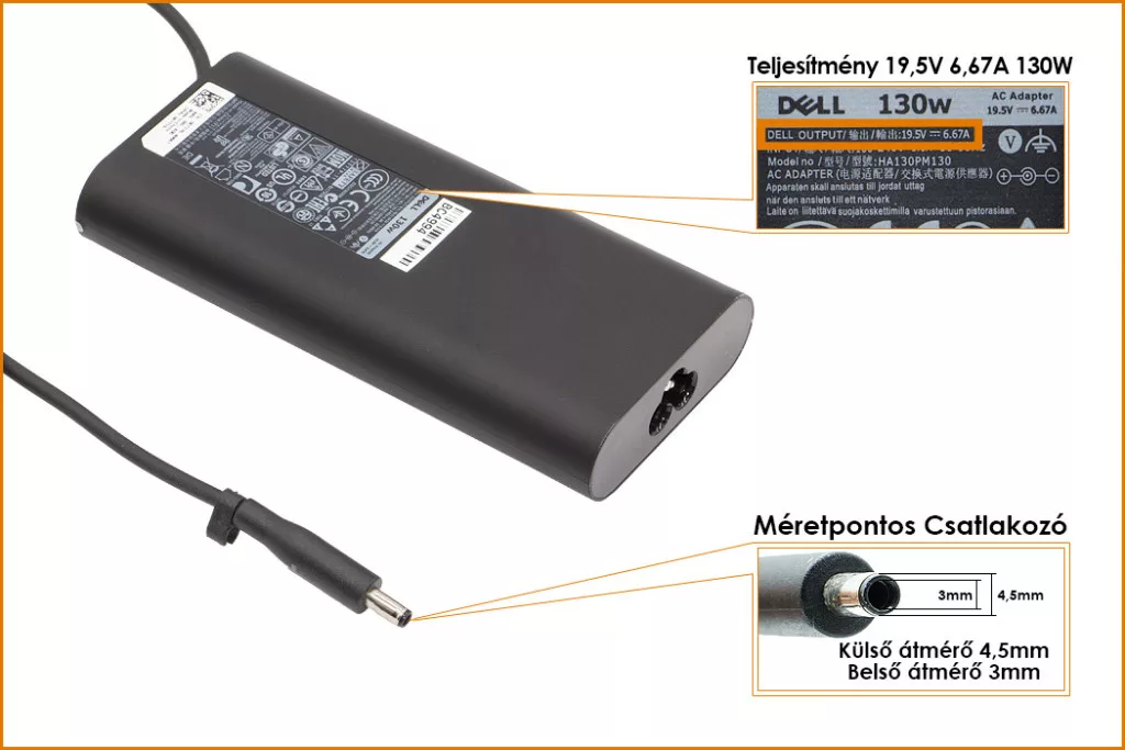 Eredeti, Gyári 130 Wattos laptop töltő Dell laptophoz.