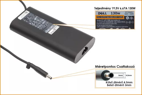 Dell 19.5V 6.67A 130W gyári új töltő (4,5mmx3mm) (06TTY6, RN7NW)