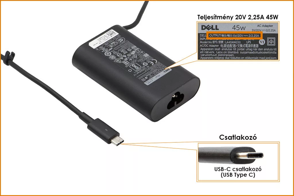 Dell 45W USB-C (Type-C) gyári laptop töltő (20V 2,25A) 0HDCY5