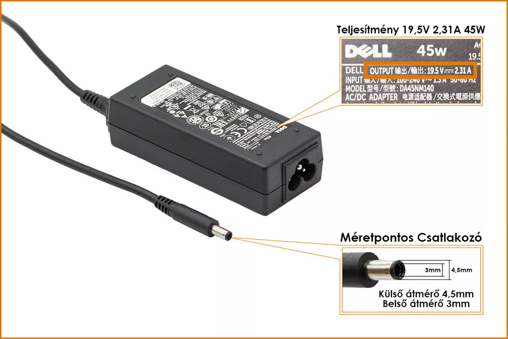 Dell Inspiron 3451 gyári új töltő 19.5V 2.31A 45W, 0YTFJC