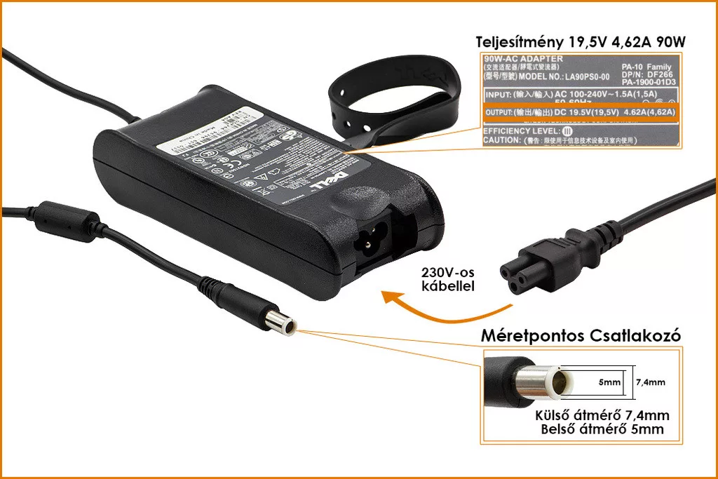 Dell PA-10 19.5V 4.62A 90W gyári új töltő (9T215, PA-1900-02D2)