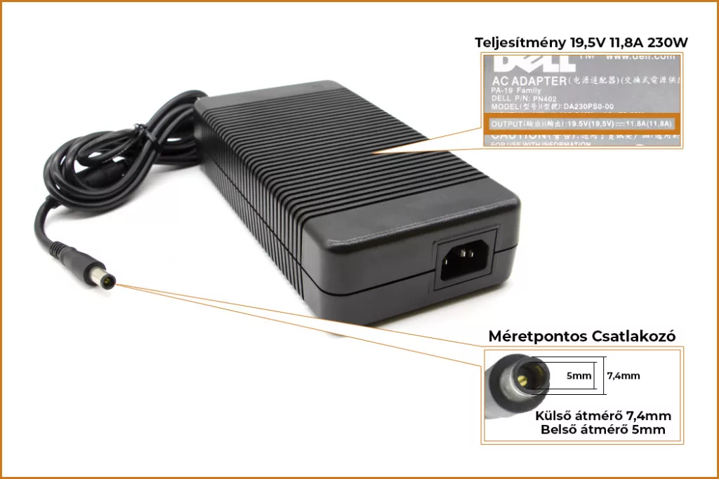 Dell PA-19 PN402 DA230PS0-00 19.5V 11.8A 230W gyári új töltő