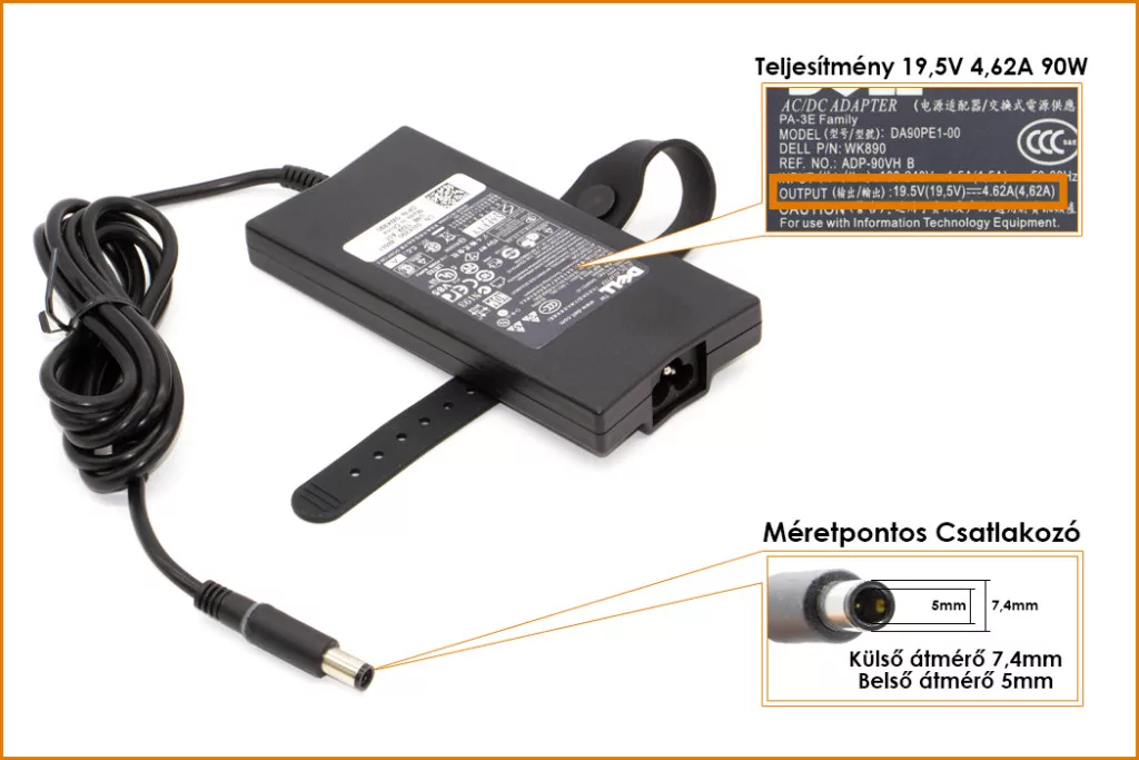 Eredeti, Gyári 90 Wattos laptop töltő Dell laptophoz.