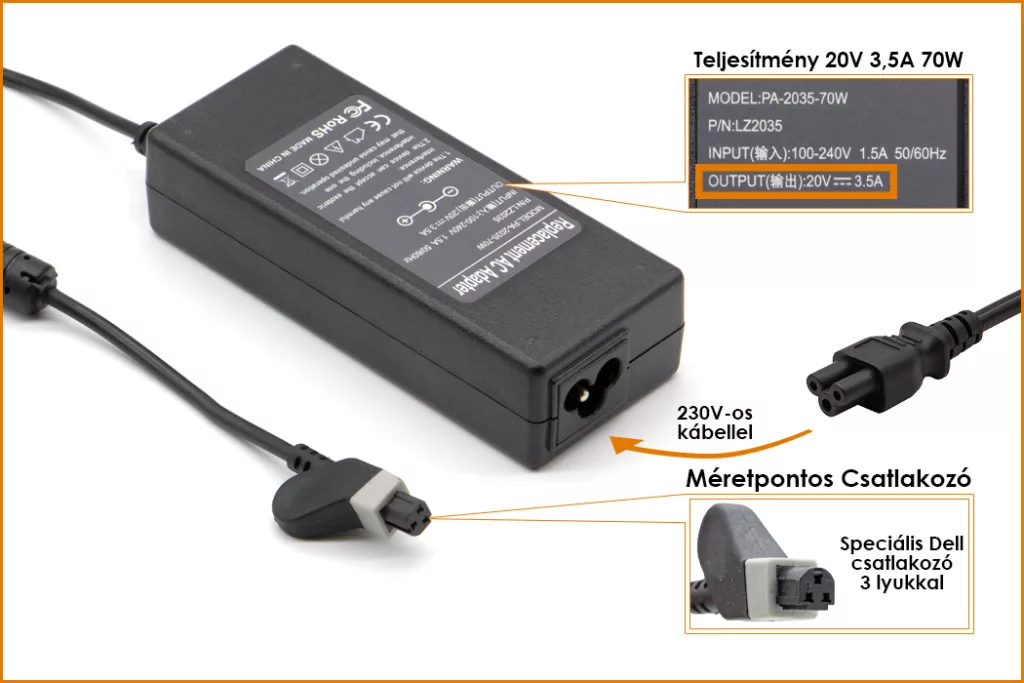 Kiváló mínőségű 70 Wattos laptop töltő Dell laptophoz.