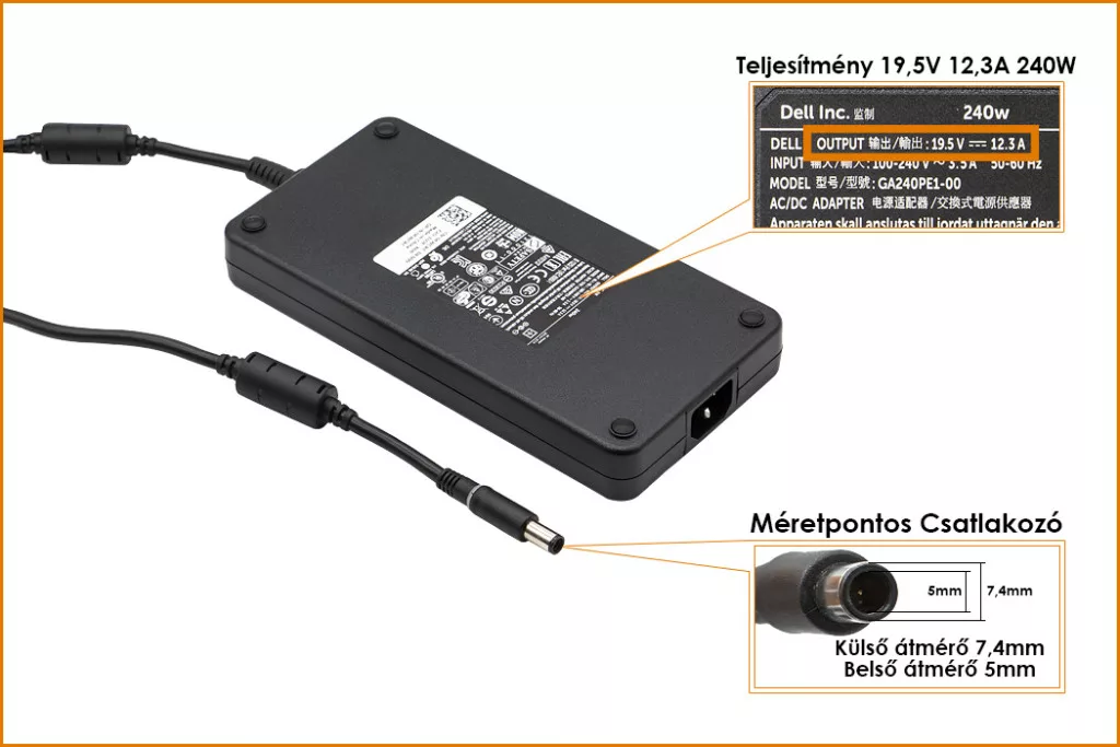 Eredeti, Gyári 240 Wattos laptop töltő Dell laptophoz.