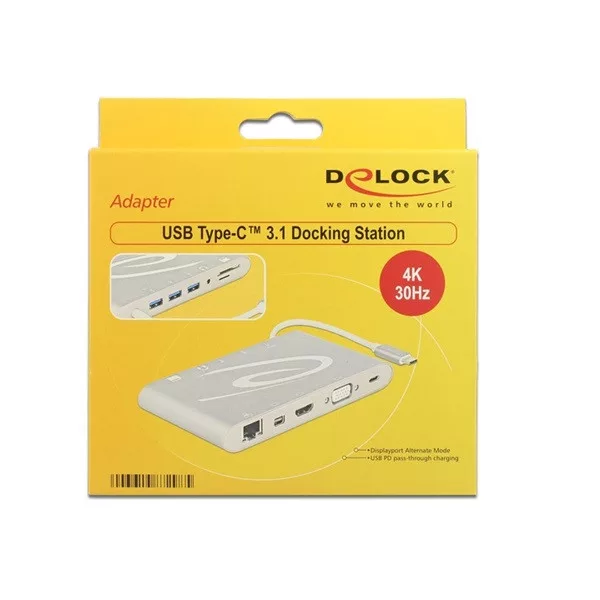 Delock Notebook Dokkoló - 87298 (USB-C 3.1 Dock 4K HDMI+LAN+SD+USB 3.0 (USB-C bem. / HDMI+USB3.0+USB-C+RJ45+SD kim.)