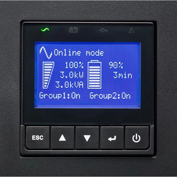 • A grafikus LCD-kijelző egyetlen képernyőn nyújt egyértelmű tájékoztatást a szünetmentes tápegység állapotáról és mérési adatairól